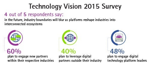 This shift to the “We Economy” was confirmed in a related Accenture global survey of more than 2,000 IT and business executives, which found that four out of five respondents believe that in the future, industry boundaries will dramatically blur as platforms reshape industries into interconnected ecosystems. While 60 percent of those surveyed said they plan to engage new partners within their respective industries, 40 percent said they plan to leverage digital partners outside their industry and 48 percent said they plan to engage digital technology platform leaders.