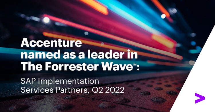 NEW YORK; May 31, 2022 – Accenture (NYSE: ACN) is recognized as a leader in The Forrester Wave™: SAP® Implementation Services Partners, Q2, 2022. The report states that, “Accenture maintains leadership with a visionary strategy for SAP customers.”
