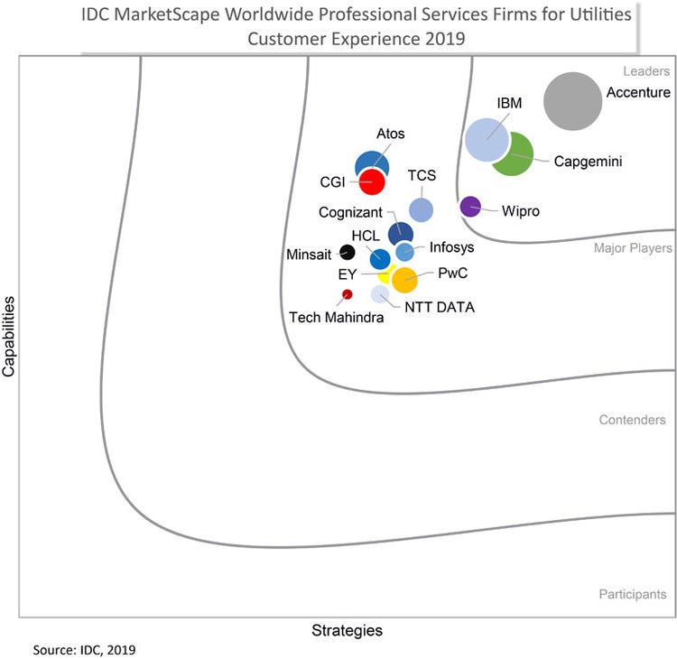 The IDC MarketScape: Worldwide Professional Services Firms for Utilities Customer Experience 2019 Vendor Assessment. can be found here.