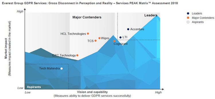 To view the Everest Group GDPR Services: Gross Disconnect in Perception and Reality — Services PEAK Matrix™ Assessment 2018, click here.