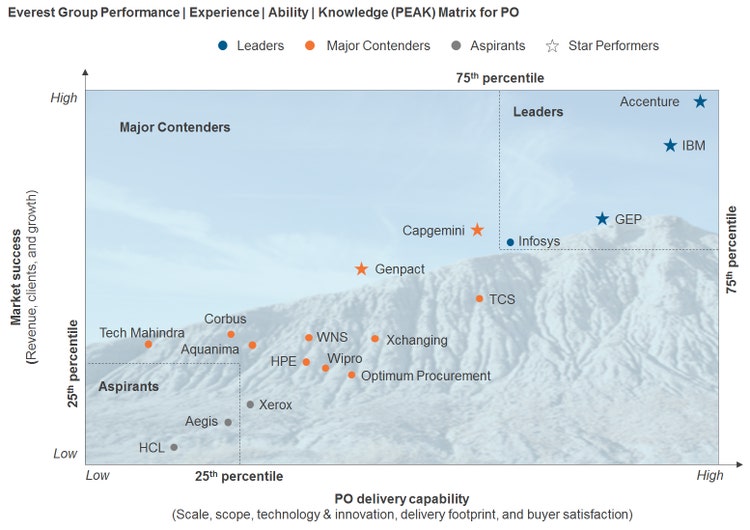 Accenture secures overall lead in procurement outsourcing market, ahead of 17 others, according to Everest Group