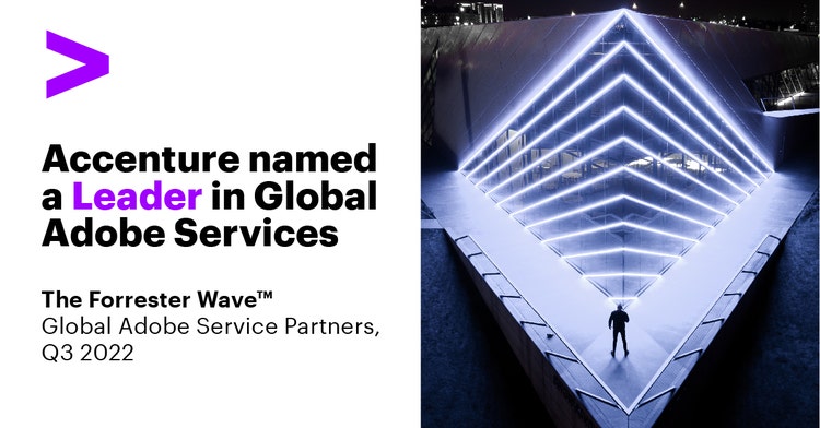 NEW YORK; July 8, 2022 – Accenture (NYSE: ACN) has been named a Leader in The Forrester Wave™: Global Adobe Services Partners, Q3 2022. The report identified, researched and evaluated the 10 most significant Adobe partners offering implementation services based on three categories: Current Offering, Strategy and Market Presence.