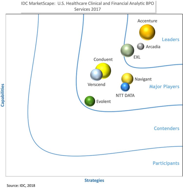 The IDC MarketScape: U.S. Healthcare Clinical and Financial Analytic BPO Services 2017 Vendor Assessment (doc # US43176217, December 2017) can be accessed here.