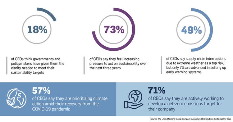 CEOs Unequivocally Call for Bold Government Action and Consistent Climate Policy at COP26, According to Latest Sustainability Research from the UN Global Compact and Accenture