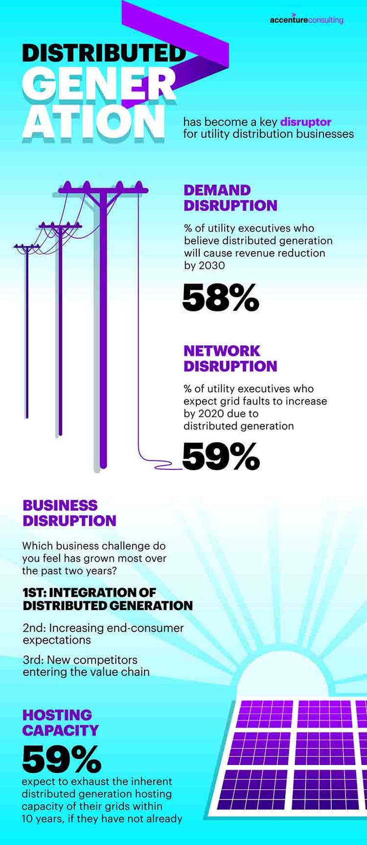 NEW YORK, May 4, 2017 – Utilities face the greatest risk of lost revenues from distributed generation (DG), including residential solar photovoltaics and fuel cells, according to Accenture’s (NYSE: ACN) Digitally Enabled Grid research, now in its fourth year.