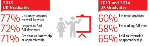 The Accenture Strategy 2015 U.K. University Graduate Employment Survey polled 1,000 students graduating in 2015, and 1,000 who graduated in 2013 and 2014, to compare the perceptions of students preparing to enter the job market with the reality experienced by recent graduates in work. It revealed the potential for a disappointing start to working life for those leaving university.