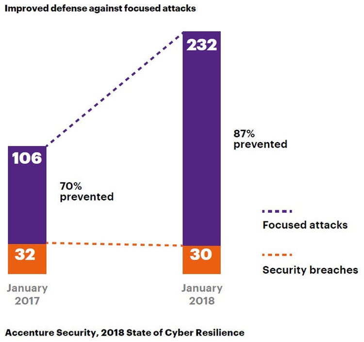 Yet, organizations still experience 30 cyber breaches per year, signaling need for more investment in innovative technologies to further improve cyber resilience