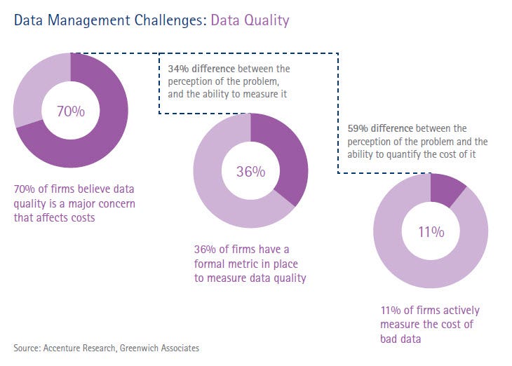 In the study of 133 front-, middle- and back-office executives in capital-markets firms, more than two-thirds (70 percent) of respondents ranked data quality as a top issue affecting their trading infrastructure, and nearly half (47 percent) said they find it difficult to deliver solutions that meet these challenges.
