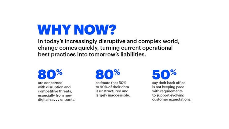 The move to Intelligent Operations is fast becoming a make-or-break proposition for organizations, with 80 percent surveyed saying they are concerned with disruption and competitive threats, especially from new digitally savvy entrants.